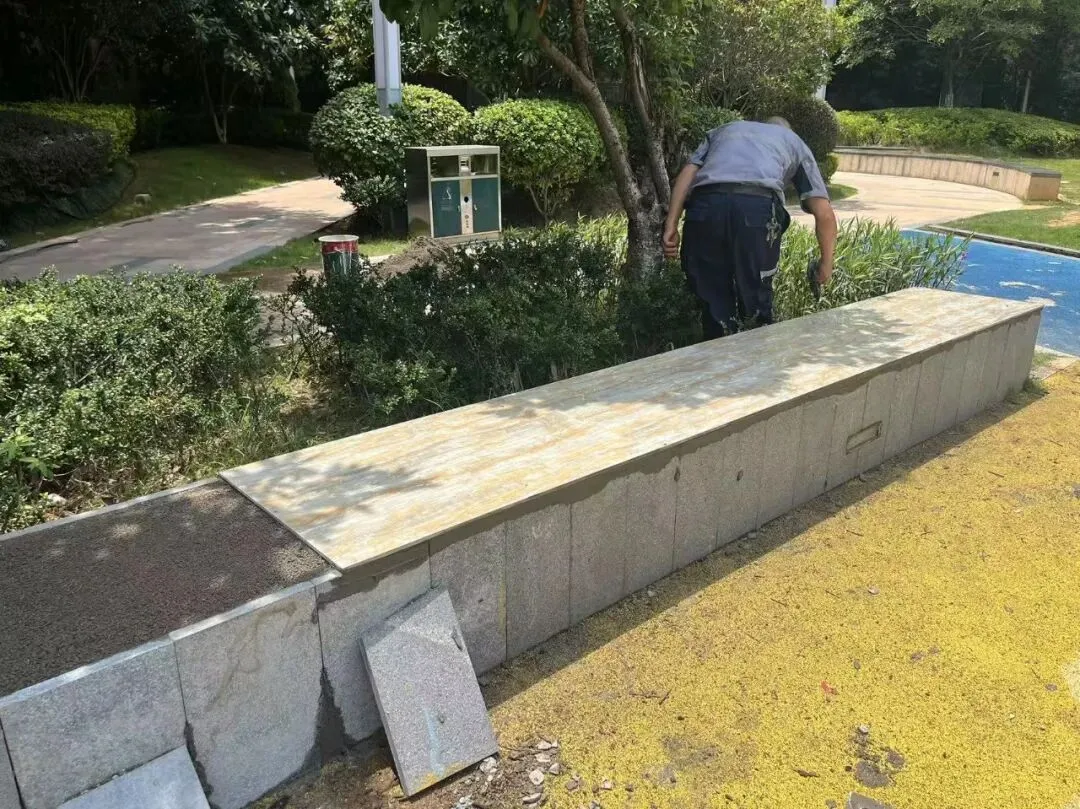 休闲设施更新:修复园区破损的休闲座椅,并于儿童游乐区旁增设洗手池,既提升了使用便利性,也美化了环境细节。