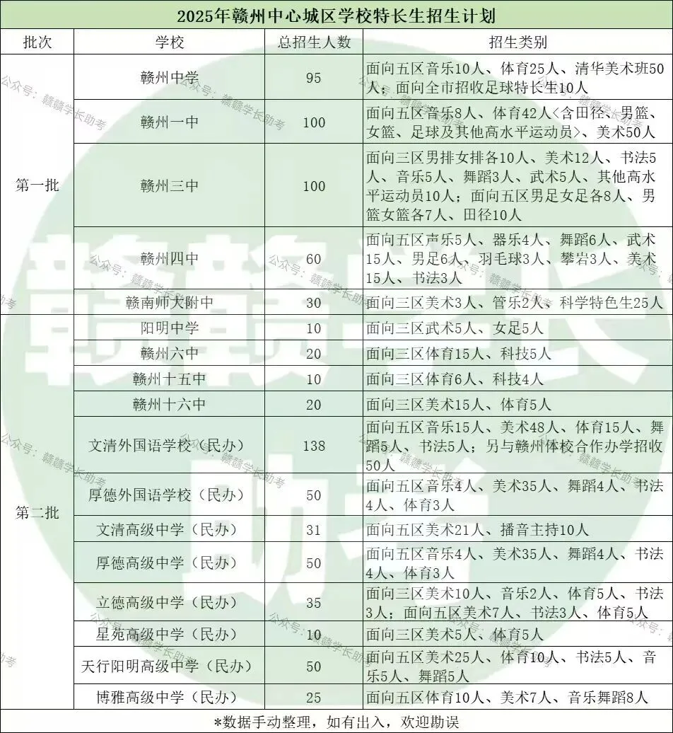 特长生对文化成绩要求较低,适合有艺术、体育、科技特长,文化成绩相对偏弱,且愿意走特长路线的孩子。赣州高中的特长生招生涵盖音乐、美术、体育、书法、科技等类别,赣州中学、赣州三中、赣南师大附中等学校基本每年都有特长招生计划。