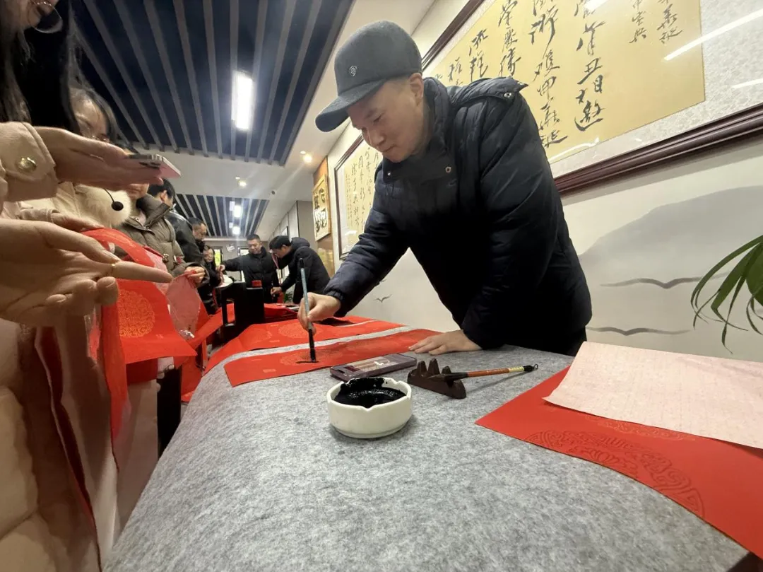 活动现场人气旺盛,师生们围聚在书写台前,欣赏书法创作、挑选心仪的春联和福字。部分同学主动请教运笔技巧,并尝试亲自书写,其稚嫩的笔触中满含着对传统文化的热爱之情。志愿者有条不紊地整理、打包作品,并将其送到师生手中,火红的春联与师生灿烂的笑脸相互映衬,成为冬日校园里一道温馨的风景线,传递着节日的暖意与校园的温情。