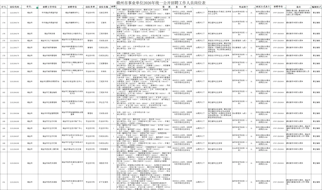 1.赣州市事业单位2026年统一公开招聘工作人员岗位表