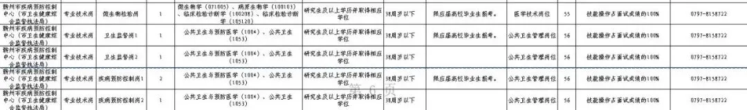 本次赣州市疾控中心(市卫监局)共招聘7个岗位