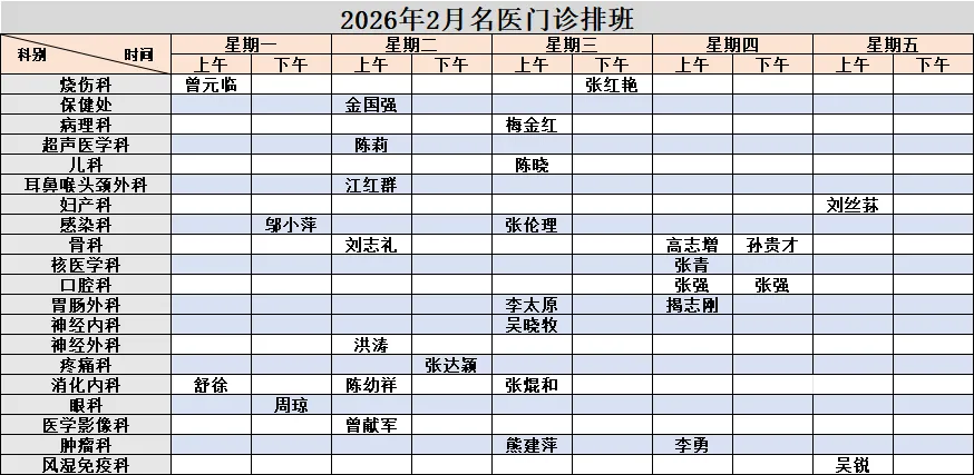注:以上排班以当日公布为准,实时查看请回到公众号首页选择“就医服务”→“当天挂号”