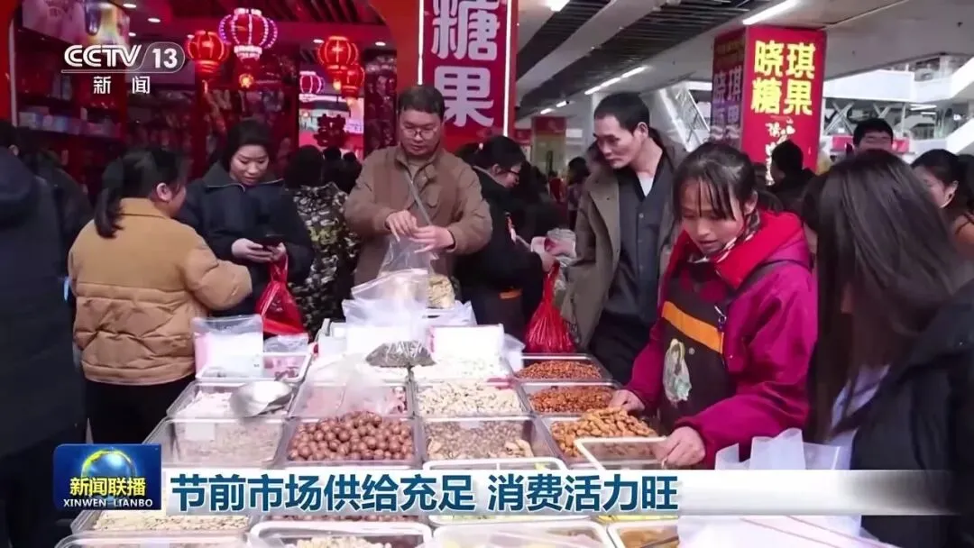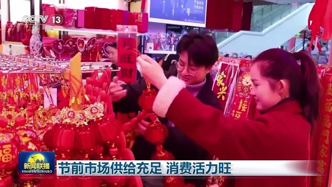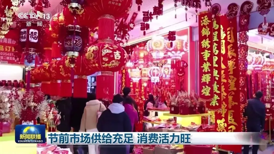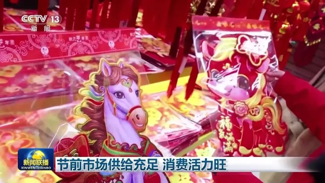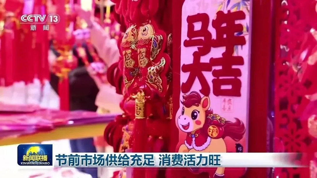今天,央视《新闻联播》报道:春节将至,各地市场供给充足,人们逛集市,买年货,消费活力旺盛。在江西南昌,年货市场也开启了热购模式,各种各样马年主题的装饰品摆满货架,吸引很多市民驻足挑选。
