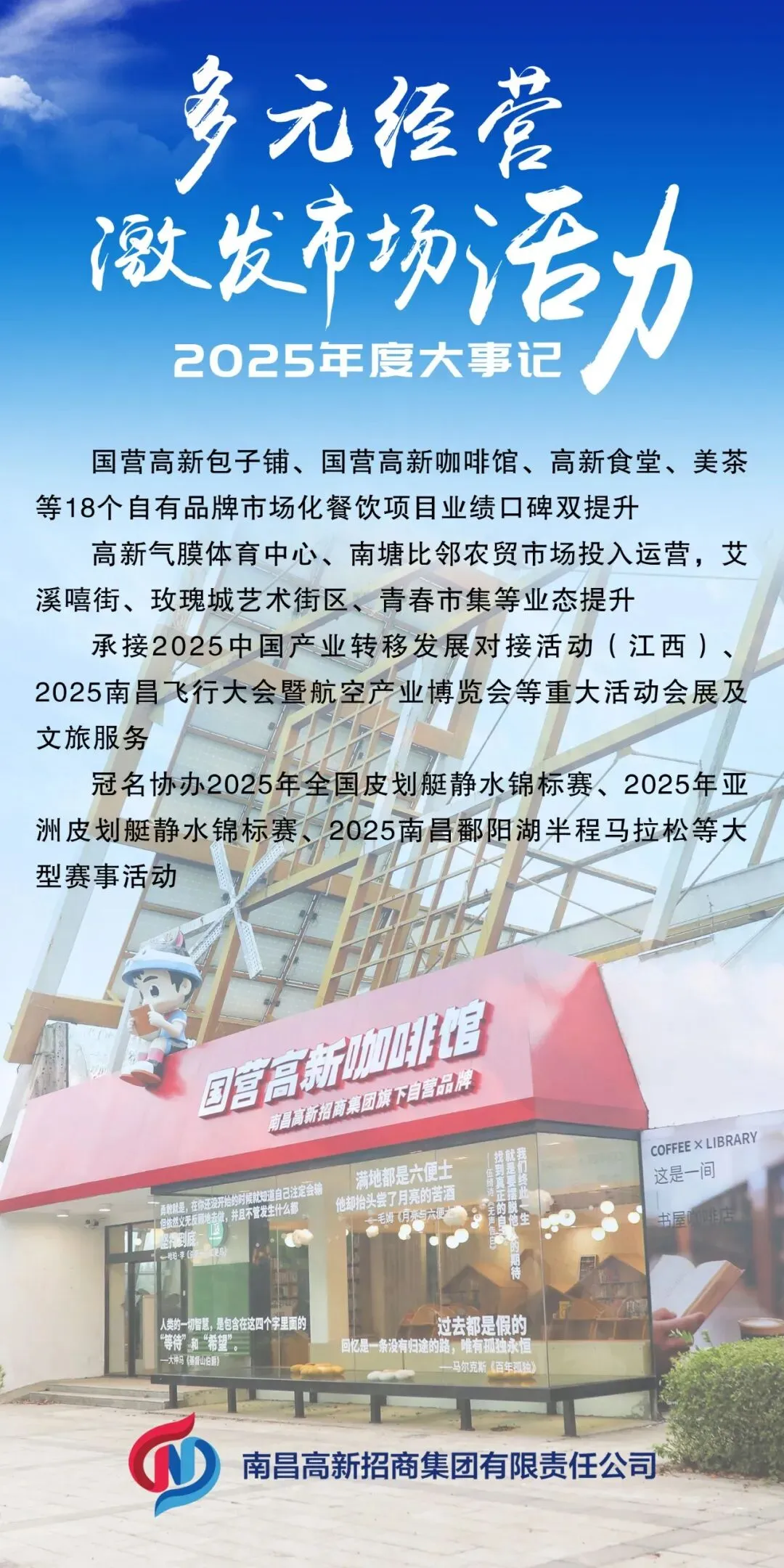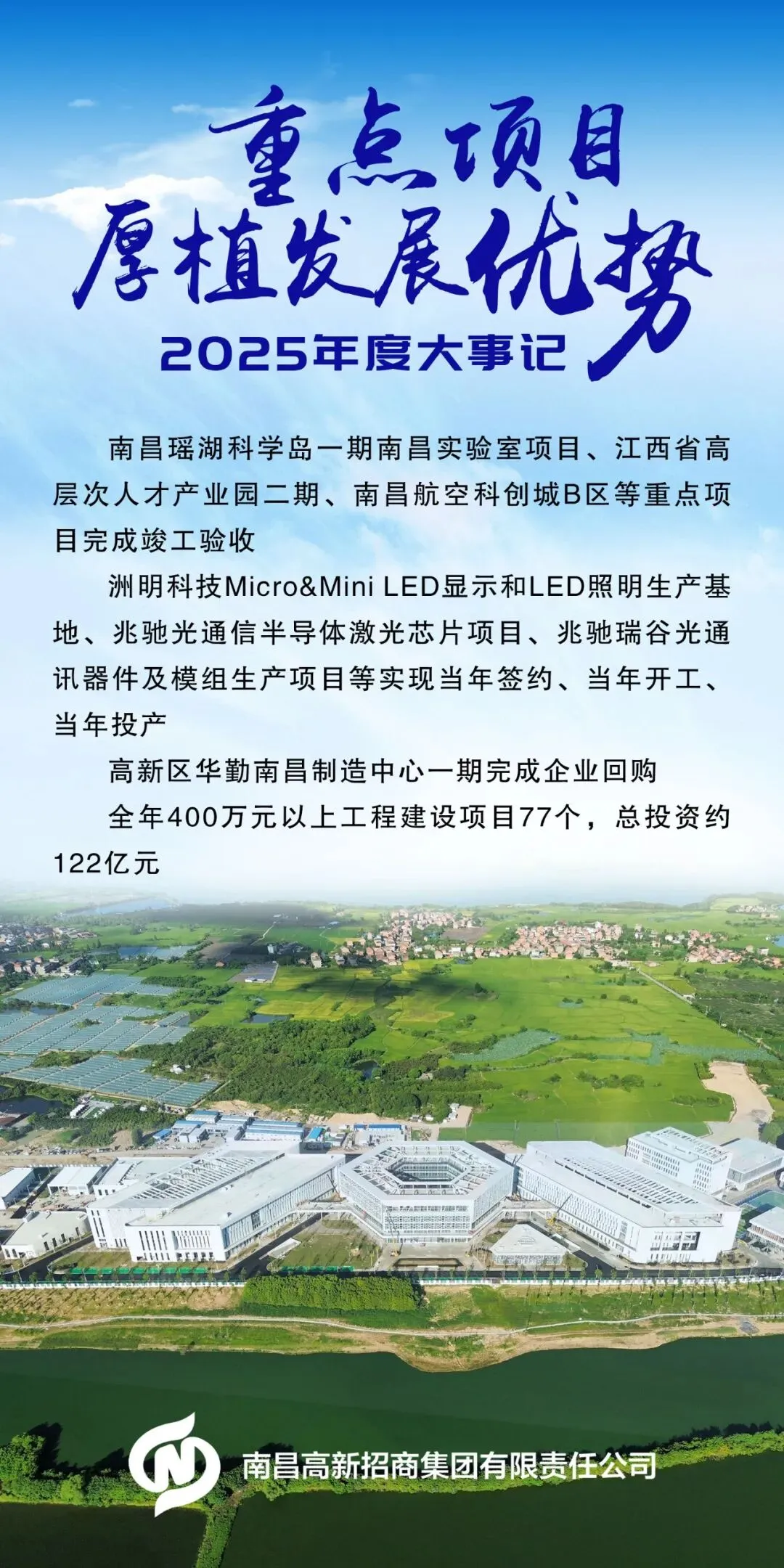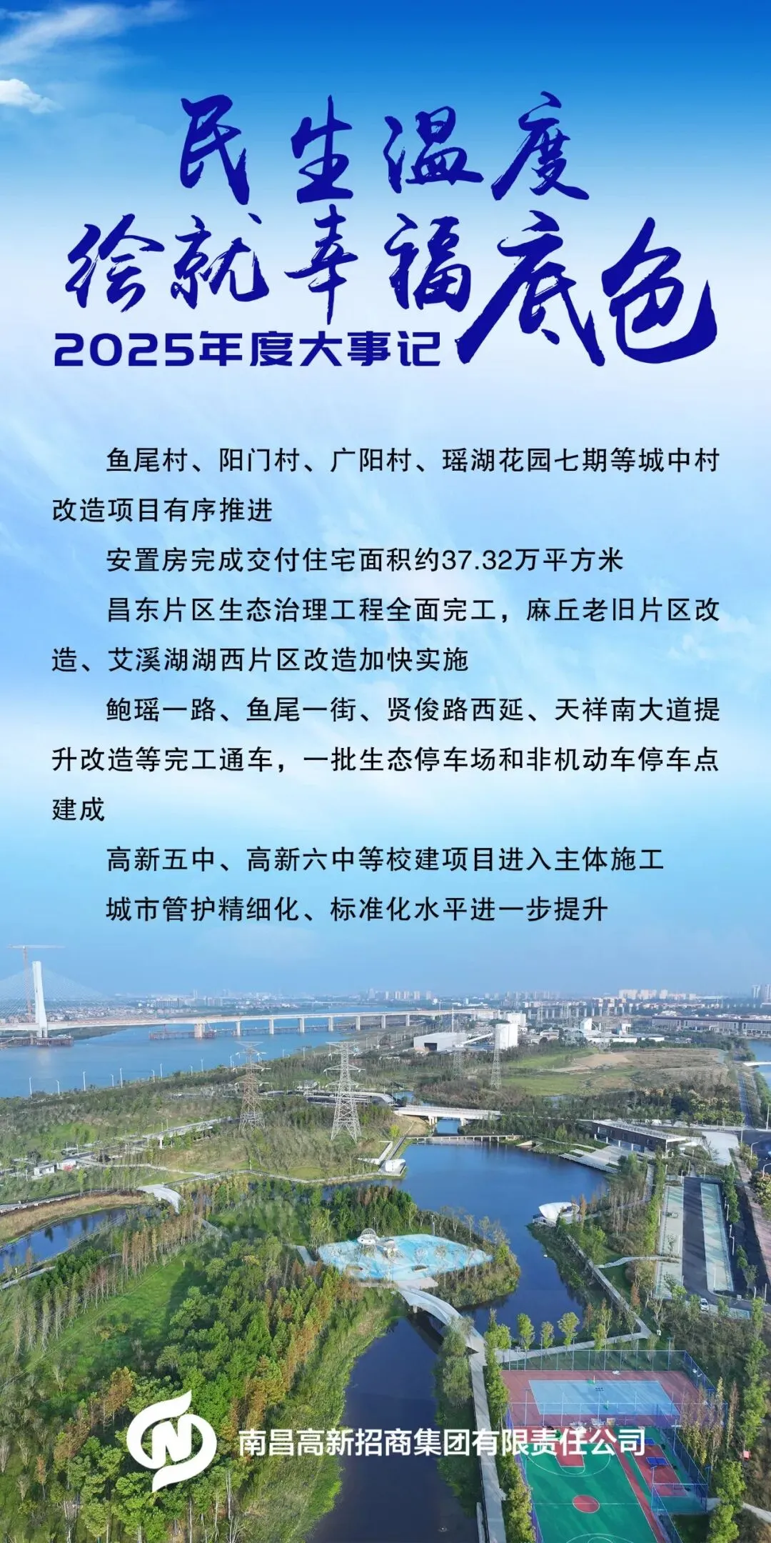 产业发展势头强劲、城乡面貌加快焕新、民生福祉日益增进、文旅体商融合效应持续放大……刚刚过去的2025年,南昌高新招商集团持续深入践行“一业一企、一企一强”市场化改革,在投资招商、项目建设、资产运营、市场化业务等领域多面开花。一个个项目落地彰显高新营商温度与发展潜力,一次次出圈时刻尽显城区活力与高新魅力,助力南昌高新区在加速建设“三区两高地”过程中,释放出澎湃的发展动能。