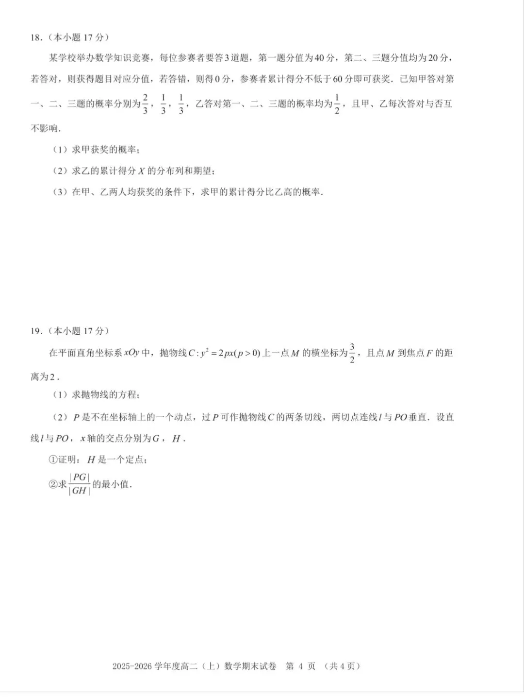 - 创新性:第19题的抛物线问题设计新颖,考查了抛物线的几何性质和切线方程,具有一定的创新性。