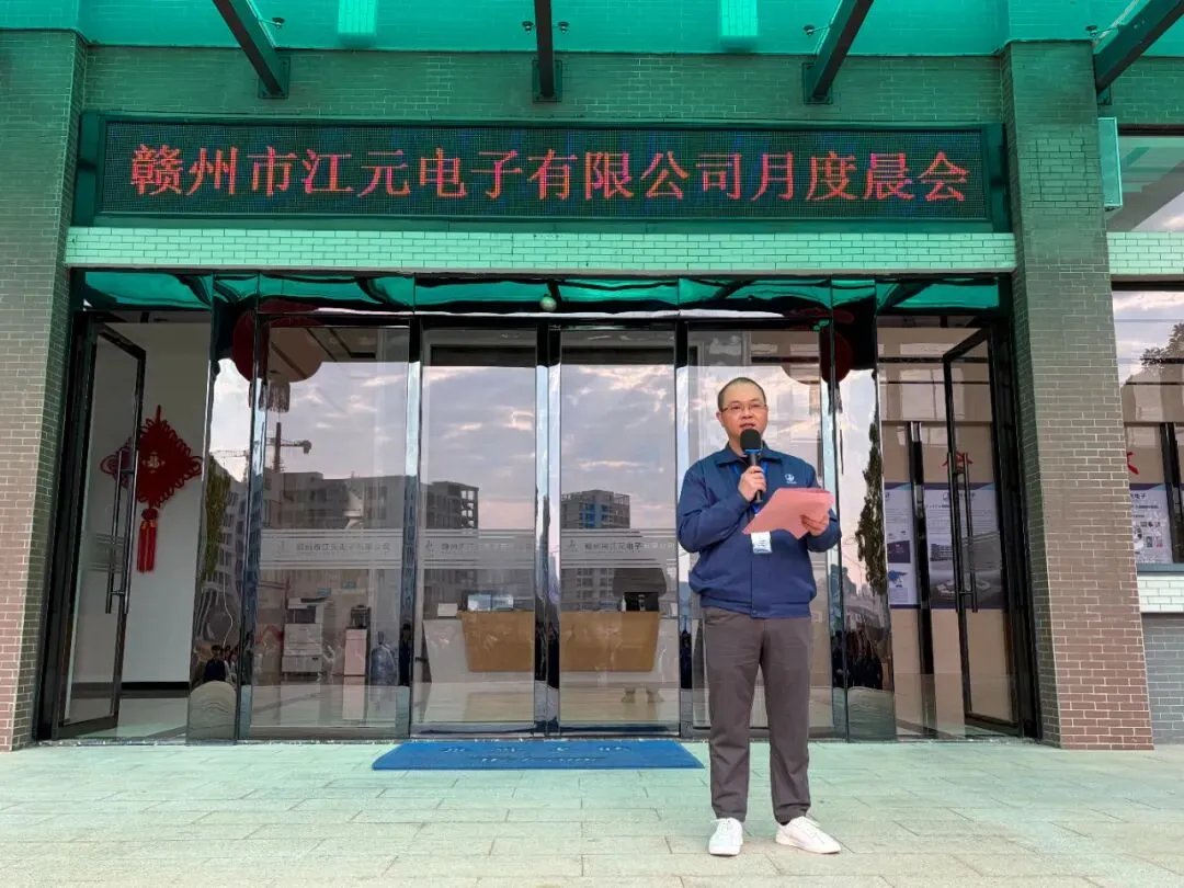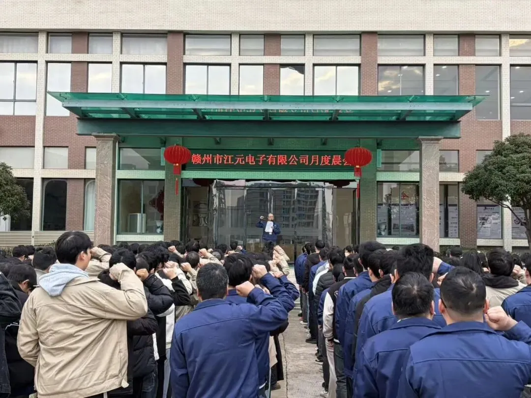 2月3日,赣州市江元电子有限公司举行2月晨会,通过庄严宣誓、业绩通报、总经理讲话及表彰先进等环节总结1月工作成效、明确年度质量方向,为“质量保障年”开好局、起好步。庄严宣誓强初心。晨会在铿锵有力的宣誓声中拉开帷幕。值班经理、品质部经理张忠荣带领全体员工高举右拳,齐声宣读公司誓词,誓言回荡在厂区上空,彰显江元人坚守初心、追求卓越的决心。