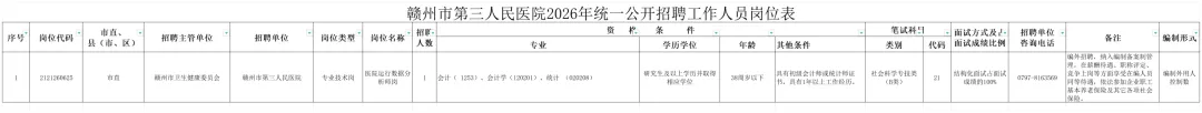 根据赣州市人力资源和社会保障局2026年2月2日发布的《赣州市事业单位2026年统一公开招聘工作人员公告》有关要求,现将此次招聘计划有关事项及我院岗位计划公告如下:
