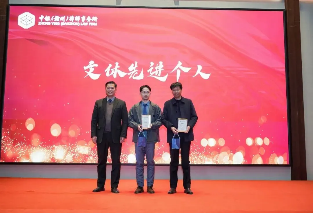 随后,律所对“十载同心奖” 获得者为雷鹏、尹建华;“赣鄱律师论坛优秀论文” 获得者为黎飞、丁建欣;“杰出贡献奖”姚金良、余梦宇;“优秀党员律师”获得者为赖宇敏;“潜力新星”获得者为丁建欣、刘柳;“优秀员工”获得者为陈曦;“品牌宣传贡献奖” 获得者为郭明华;“优秀公益律师”获得者为曾骏;“文体先进个人”获得者为王兰灵、刘琦等9类奖项获得者进行了表彰。从专业贡献到公益担当,从新鲜血液到资深伙伴,每一份荣誉都见证着中银赣州人的坚守与付出。