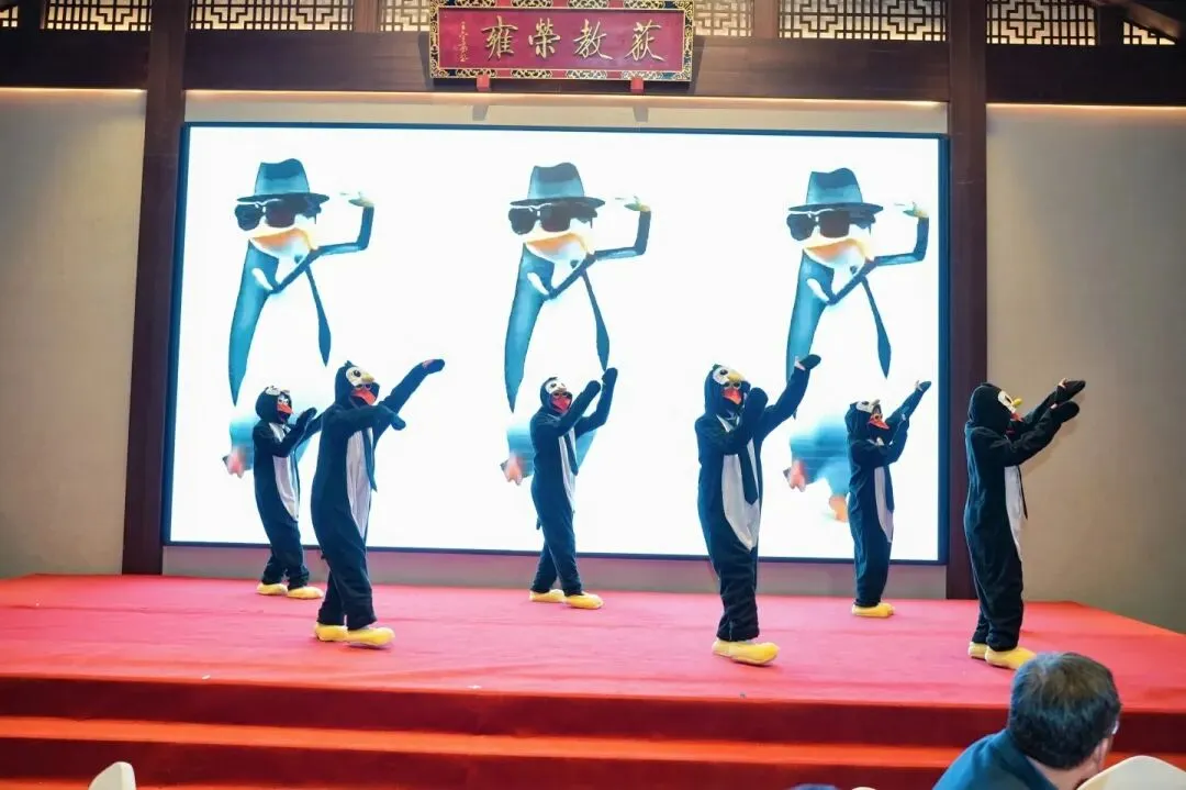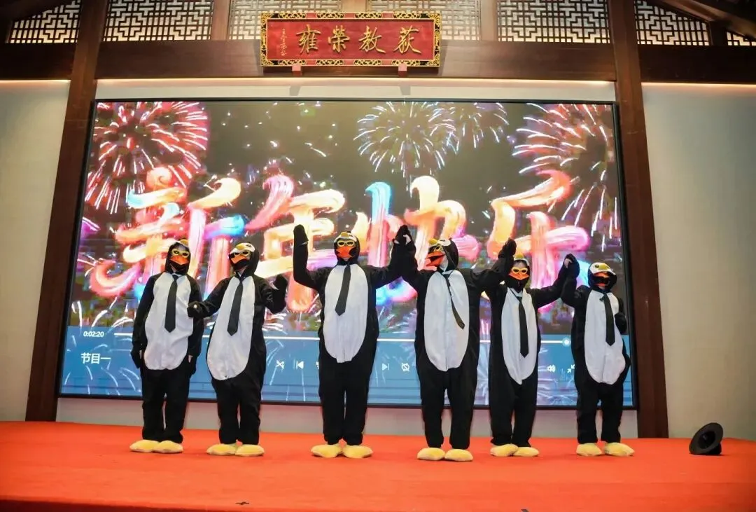 夜幕降临,迎新春晚会正式开场。活力满满的开场舞《企鹅舞》瞬间点燃现场氛围,律政精英们卸下严谨的职业标签,以灵动的舞姿展现出别样的风采。