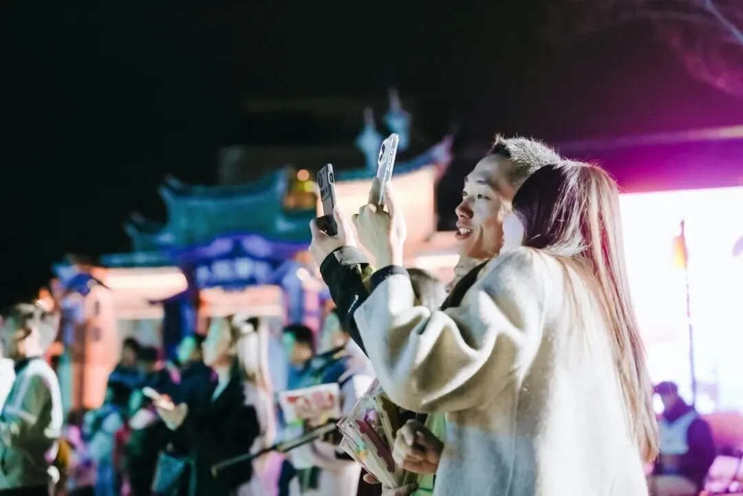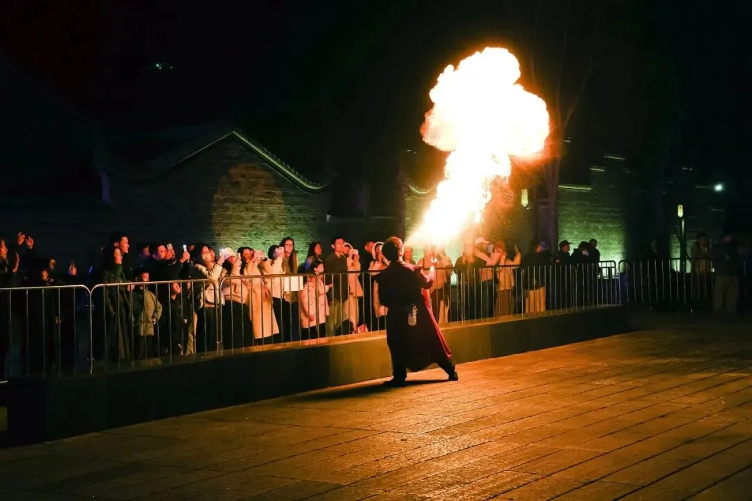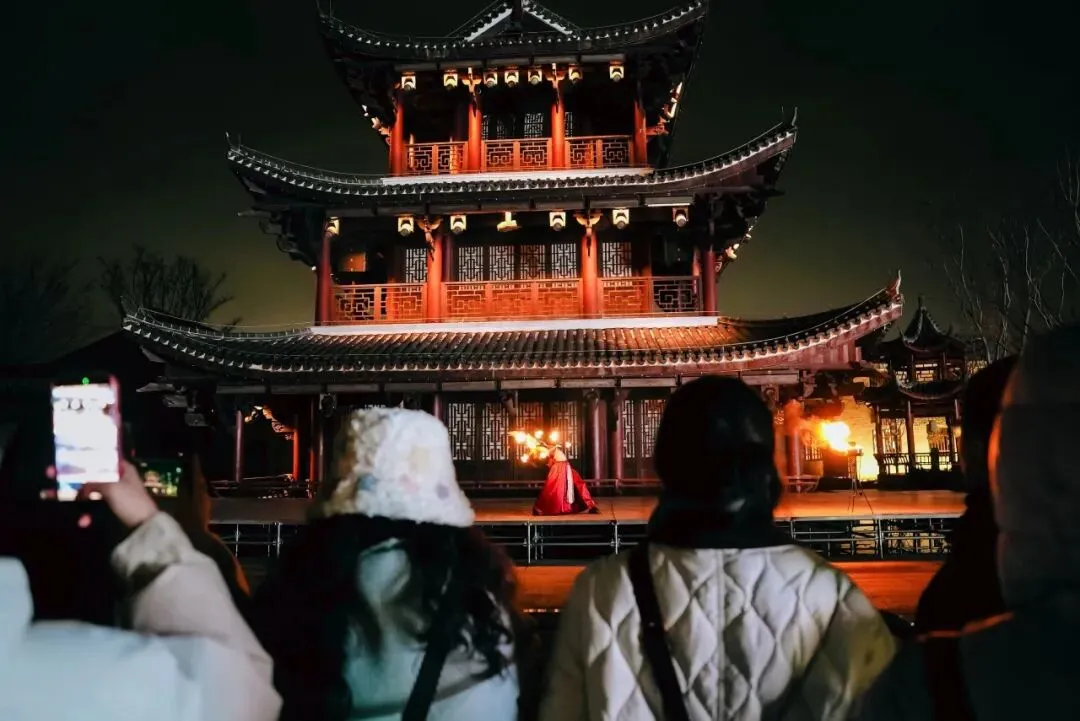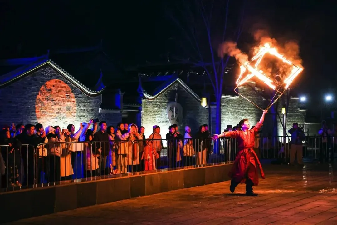 As the Chinese New Year approaches,the scenic area combines traditional New Year customs with the ancient town's style,offering a variety of experiences including intangible cultural heritage iron flower performance,lantern riddles,arrow throwing,cuju,lion dancing and stilt walking.
