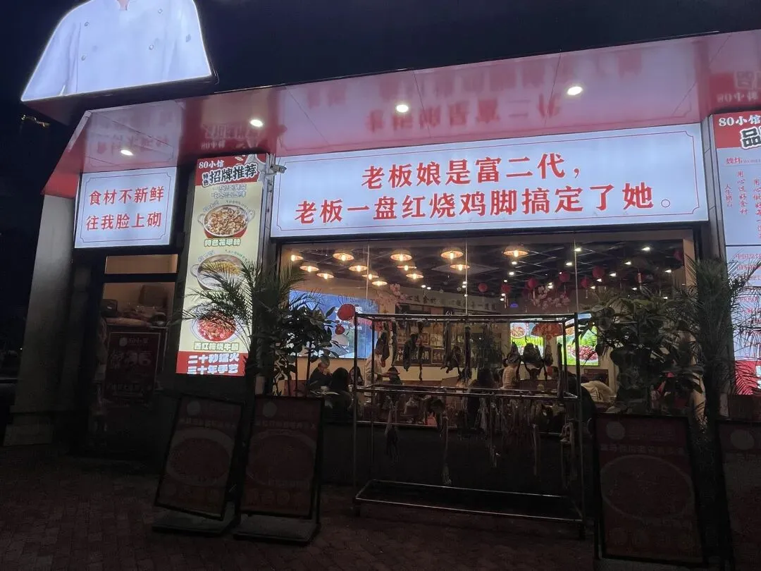 原本冲王星越打卡的私房菜去的,却被西湖区这家「80小馆(朝阳首店)」的魔性招牌拿捏——“老板娘是富二代,老板一盘红烧鸡脚搞定了她”,排队30分钟实测,果然名不虚传!
