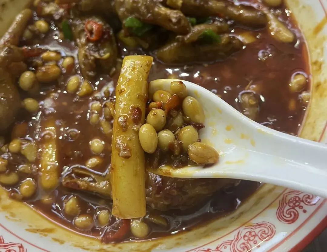 鸡脚软糯脱骨浸满卤香,黄豆饱满清甜,年糕吸足汤汁Q弹,老表记忆里的家常味直接拉满;