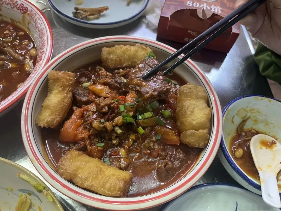 牛腩炖得软烂入味,酸甜汤汁裹着酥脆油条,一口爆汁的神仙搭配,桌桌必点;