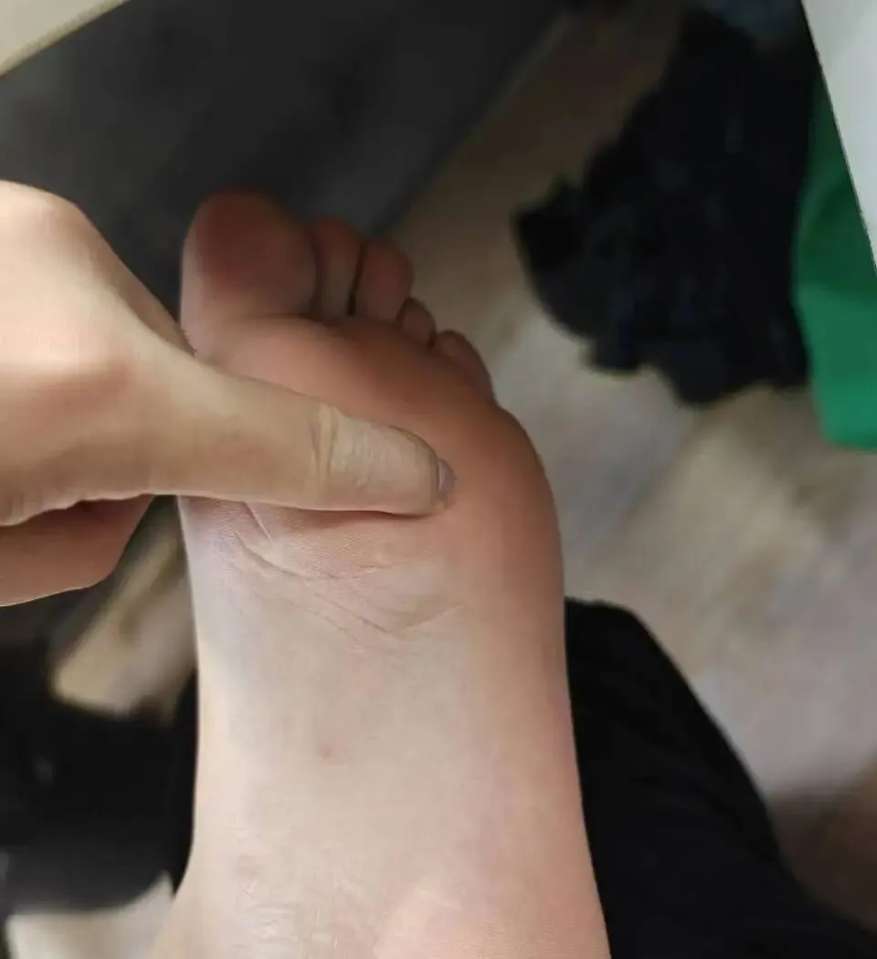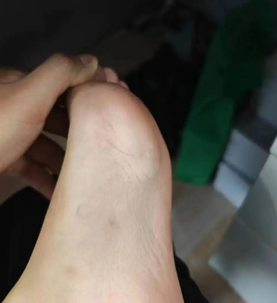 此后一年,这个硬块在他的脚底默默生长。到2019年,它已长大至“接近一块钱硬币大小,但是还没到,差不多比五毛钱硬币稍微再大一圈”,按压痛感更明显。