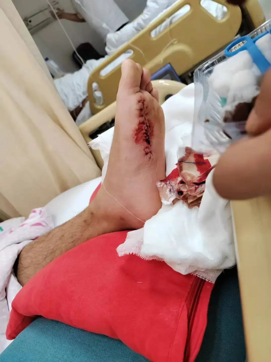 白糖手术切除的弥漫型肿瘤及缠着纱布的左脚 | 微光计划