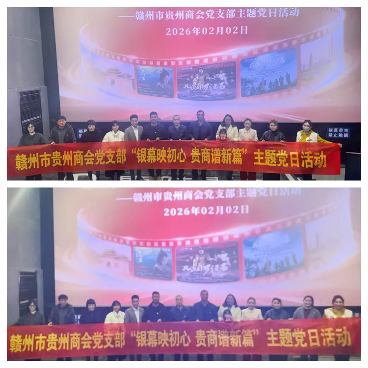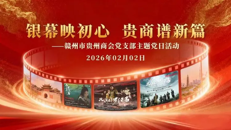 为深化党建与赣南文化融合,丰富主题党日活动形式,2026年2月2日下午,赣州市贵州商会党支部组织全体党员、积极分子、发展对象及会员代表,开展“银幕映初心 贵商谱新篇”主题党日观影活动,集中观看赣南首部历史文旅武侠电影《风云宝石I:罗汉岩》,在光影叙事中感受赣南历史底蕴,汲取奋进力量。