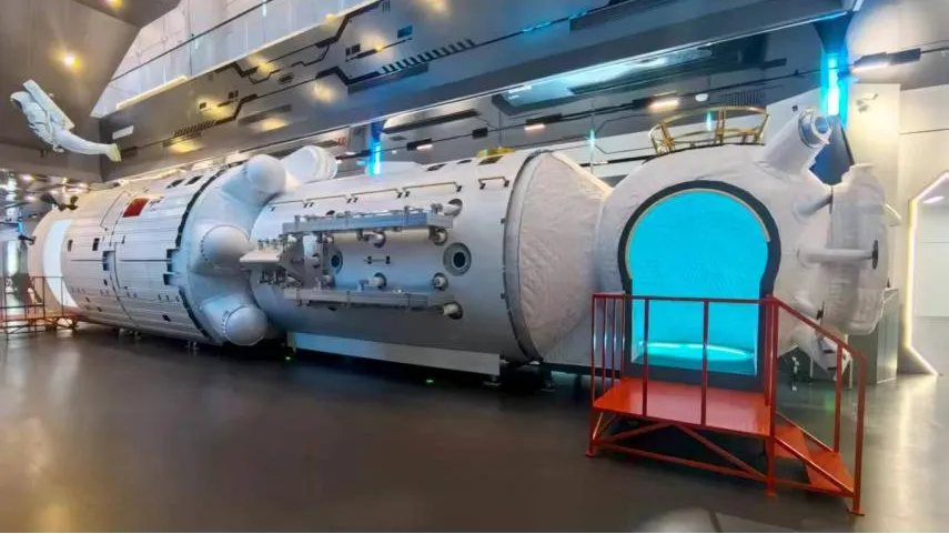 主要展示中国航天工业成就,包括核心舱、返回舱和降落伞实物等具有代表性的我国航天事业发展成果将在该展区展出。此外,该展区还设有科技之眼、XR穿梭机、行星探秘等科技感十足、有趣又好玩儿的体验项目。