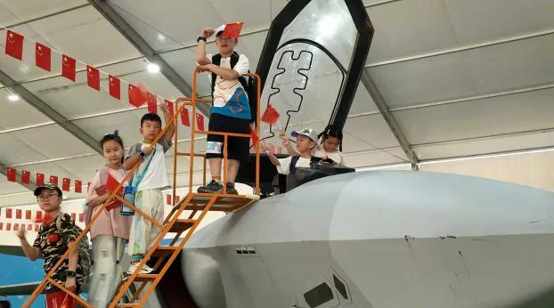 该展区主要展示震撼的大型装备,核心展项包括1:1长征二号F火箭模型,该模型全长58.34米长,可以进入舱内通过VR设备体验发射过程;更有歼-10、歼-20、直-20飞机列阵,带给观众近距离接触“大国重器”的震撼体验。户外还设有亲子小坦克、装甲车等趣味体验项目。