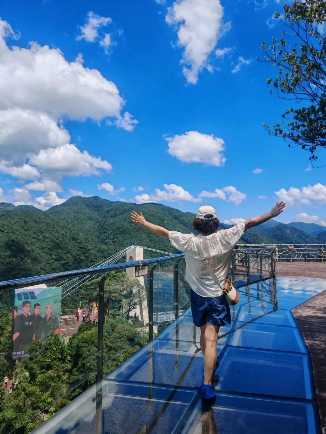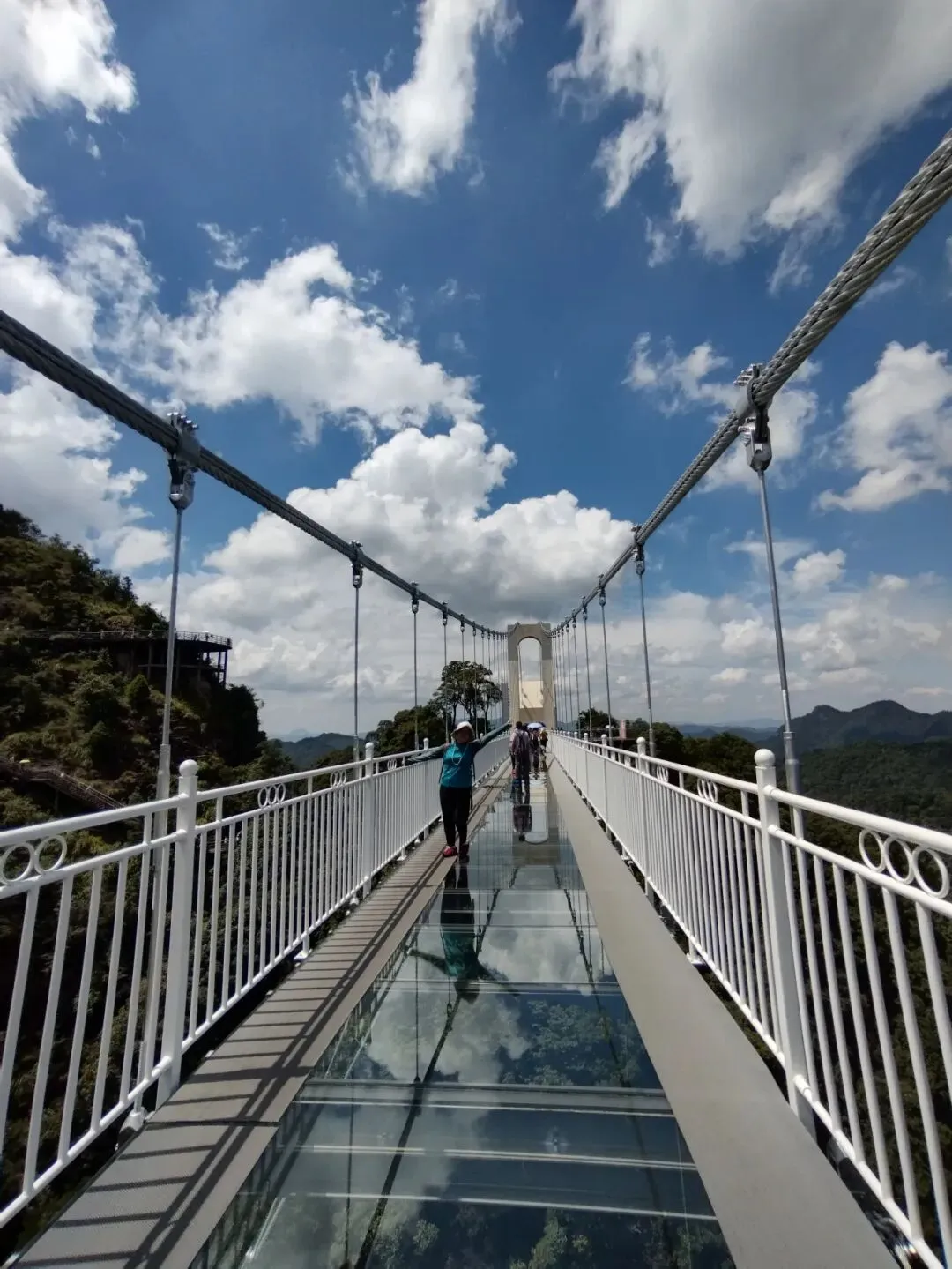 在三百山风景区的云端玻璃天桥上