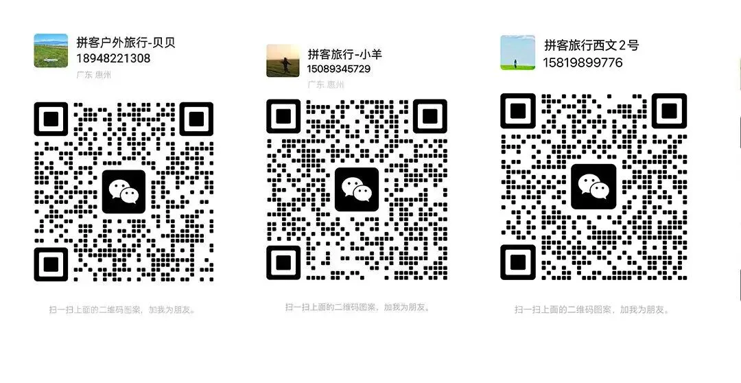 注:若您的出行日期和以上时间不一致,且您有5人以上想走这条路线可以提前一个星期告诉我们,我们根据你的时间来拼!