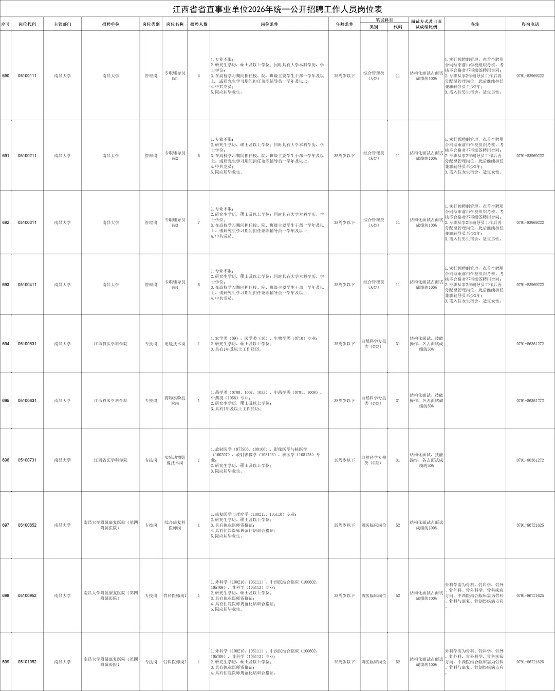 1.江西省省直事业单位2026年统一公开招聘工作人员岗位表