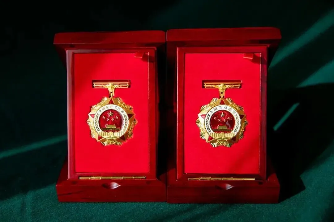 ▲2020年全国劳动模范和先进工作者奖章。新设计的奖章使用铜镀金材质,通径从55毫米扩大到60毫米,凸显了劳动最光荣、劳动最崇高、劳动最伟大、劳动最美丽的理念,彰显各行各业劳动模范和先进工作者的示范引领作用。