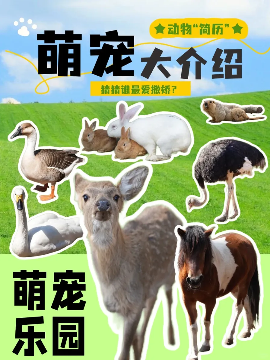 ✅萌宠互动区也是必去之处,梅花鹿、羊驼、浣熊、孔雀、水豚、松鼠、旱獭、矮马等萌物悉数齐聚,软萌憨态各有可爱,近距离互动投喂,沉浸式感受萌宠相伴的治愈时光,大人小孩都能玩到尽兴。