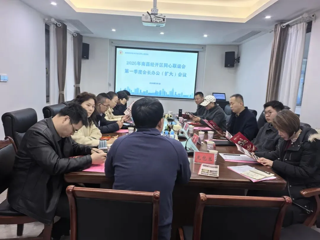 2月3日,为凝聚发展共识,赋能产业创新,南昌经开区同心联谊会赴江西国鸿集团股份有限公司开展走访调研,并现场召开2026年第一季度会长办公(扩大)会议。