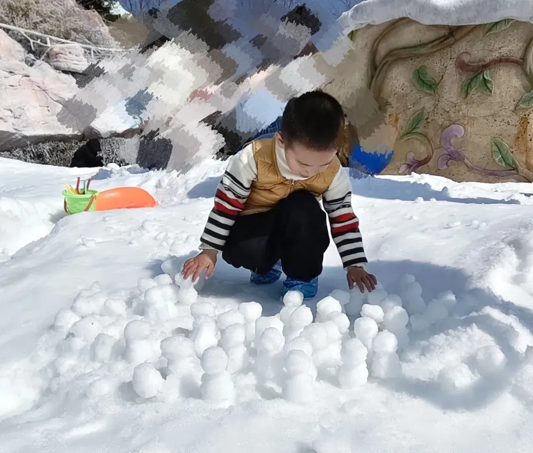 我和大宝则接雪花、打雪仗,在皑皑雪地里踩出一圈圈欢快的足迹。大宝一个“出溜滑”,摔了个结实的屁股墩,体验了另类“滑雪”,湿了裤子,却收获了满格笑声。