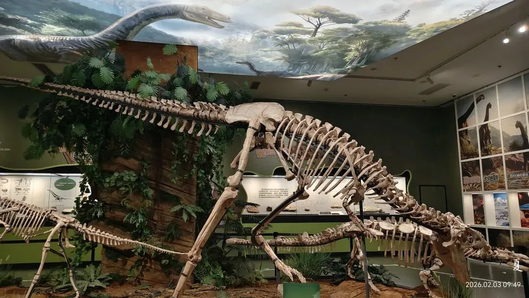 次日,我们如约而至。直奔二楼恐龙展厅,孩子们瞬间被巨大的骨架吸引,沿着展线一个个细细看去,小嘴不时发出惊叹。