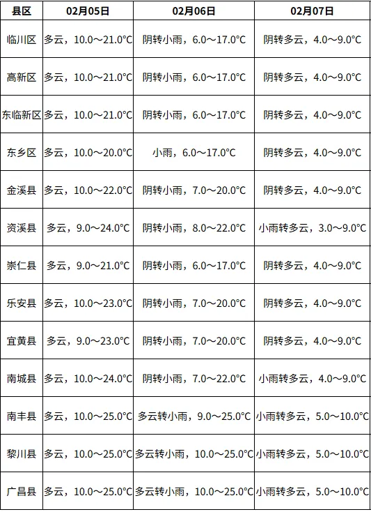 抚州最高气温可达25℃!
