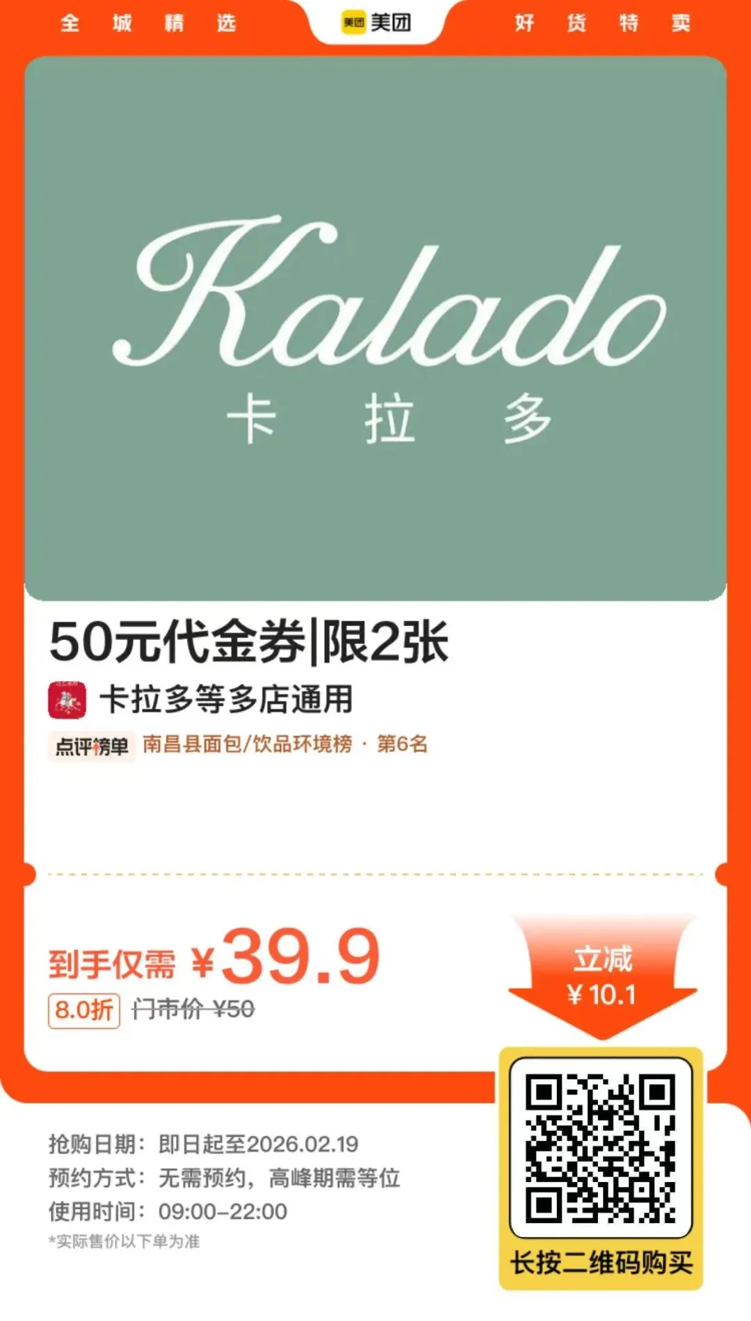 南昌甜品脑袋赶紧冲「卡拉多」39抵50!还有多款爆款可选~