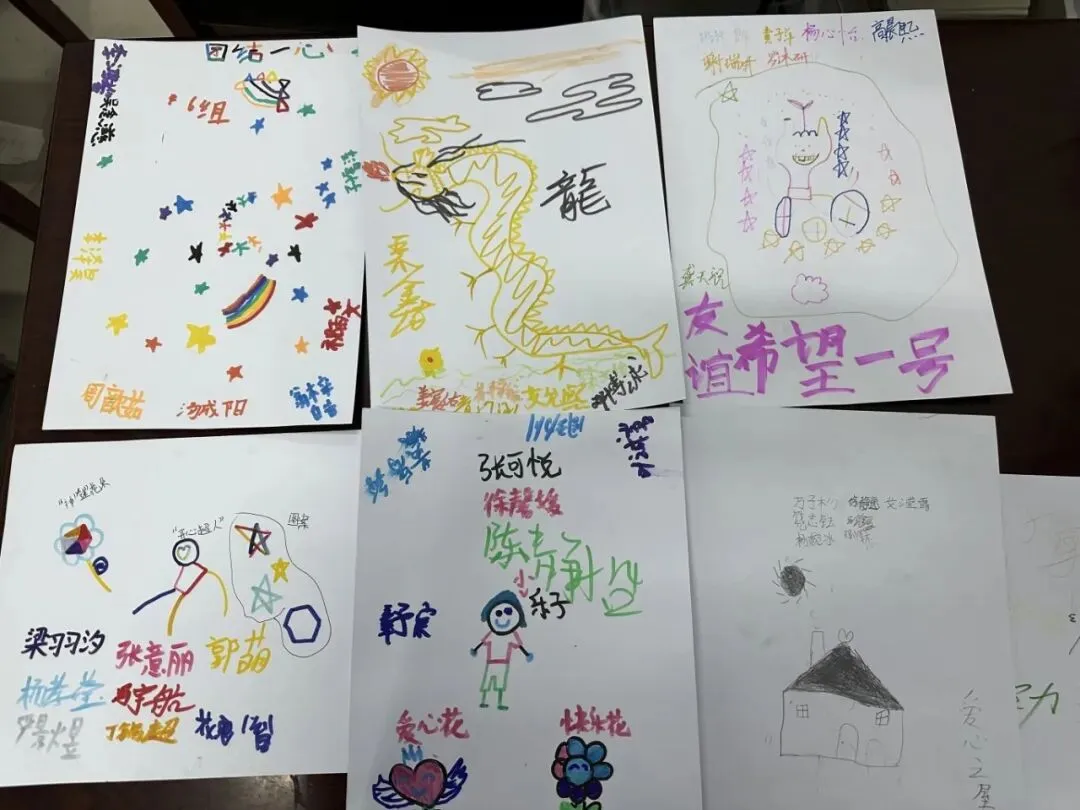 在《团队默契大考验》中,孩子们通过游戏学习合作。“无声团队创作”环节,他们轮流执笔,不语一字,却以色彩与线条传递理解与支持。真正的默契,原可静默生长,于笔尖流淌,在眼神交汇处绽放。