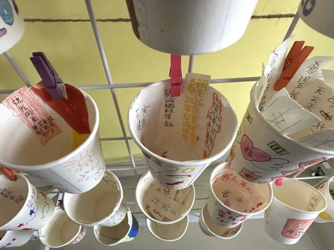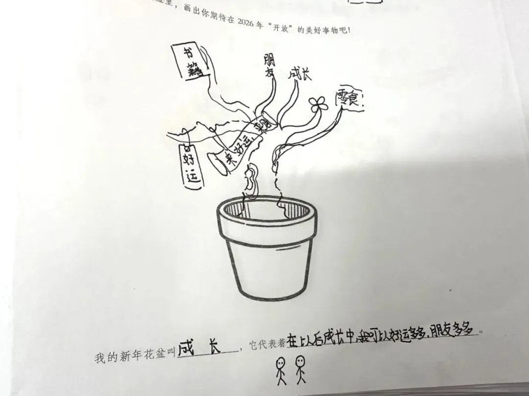 《我的新年果汁杯》让纸杯成为情感的容器。画笔与文字并肩,将开心的回忆与新年的祝福一并“装”入杯中,再贴上“心愿”与“祝福”的标签。原来,那些看不见的温暖与期待,也可以具象为可握在手中、可彼此传递的温度。