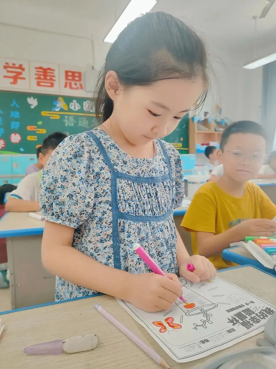 “自然能量杯”活动中,孩子们俯身观察植物,将秋葵的星形切面、向日葵的明朗笑脸细细描摹,并为情绪调配专属色彩。一杯“能量”,即是一次向内的充电——来自自然的无言馈赠,最终沉淀为属于自己的宁静与明亮。