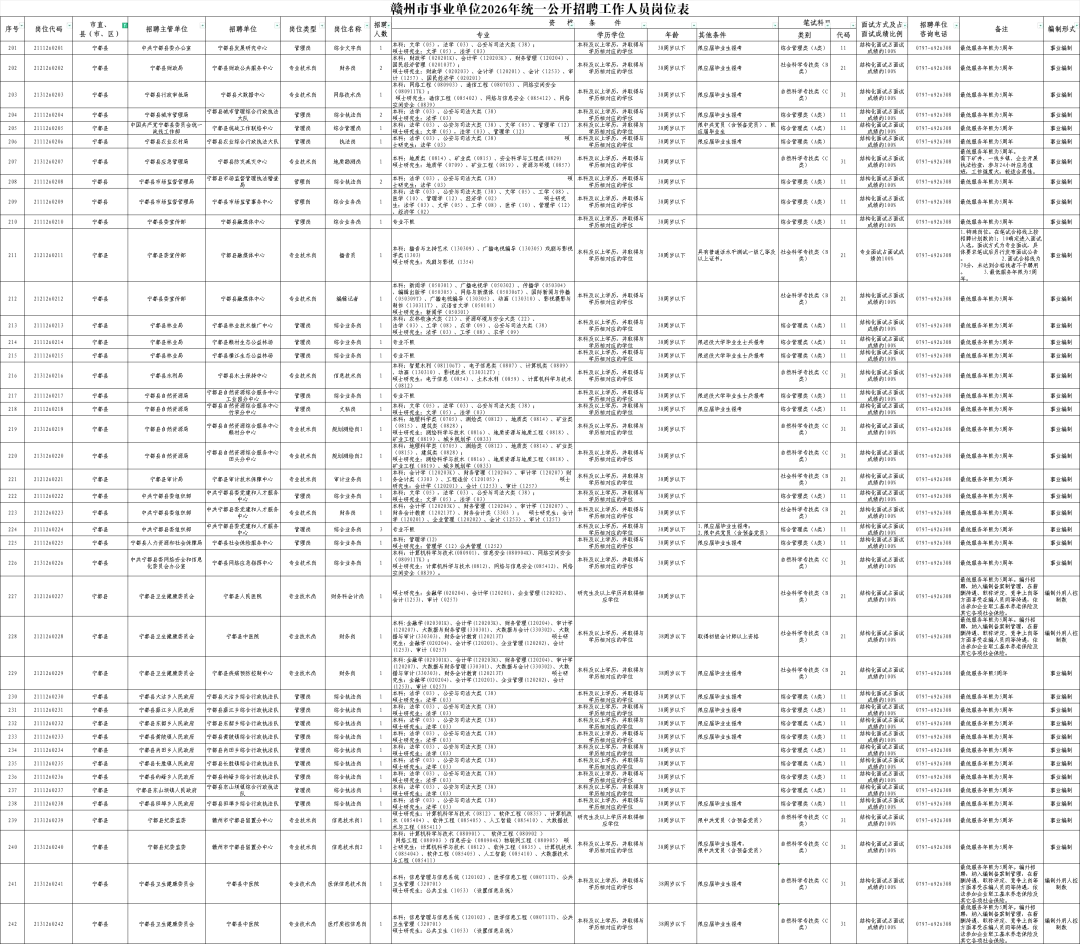 1.赣州市事业单位2026年统一公开招聘工作人员岗位表