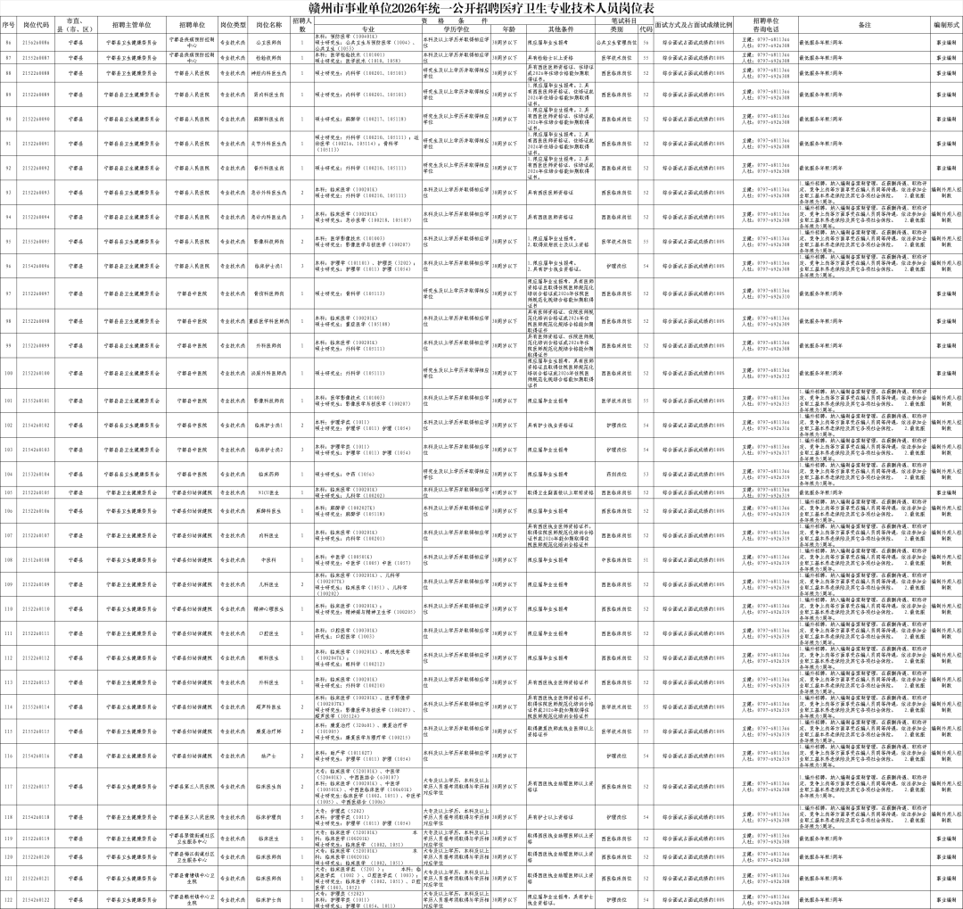 详见《赣州市事业单位2026年统一公开招聘工作人员报考指南》(附件3,以下简称《报考指南》)。