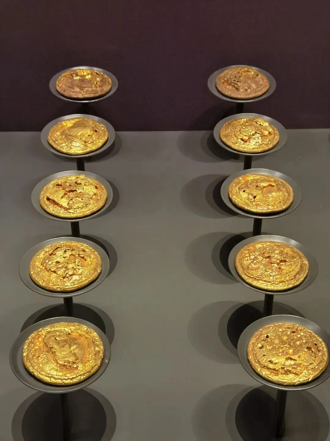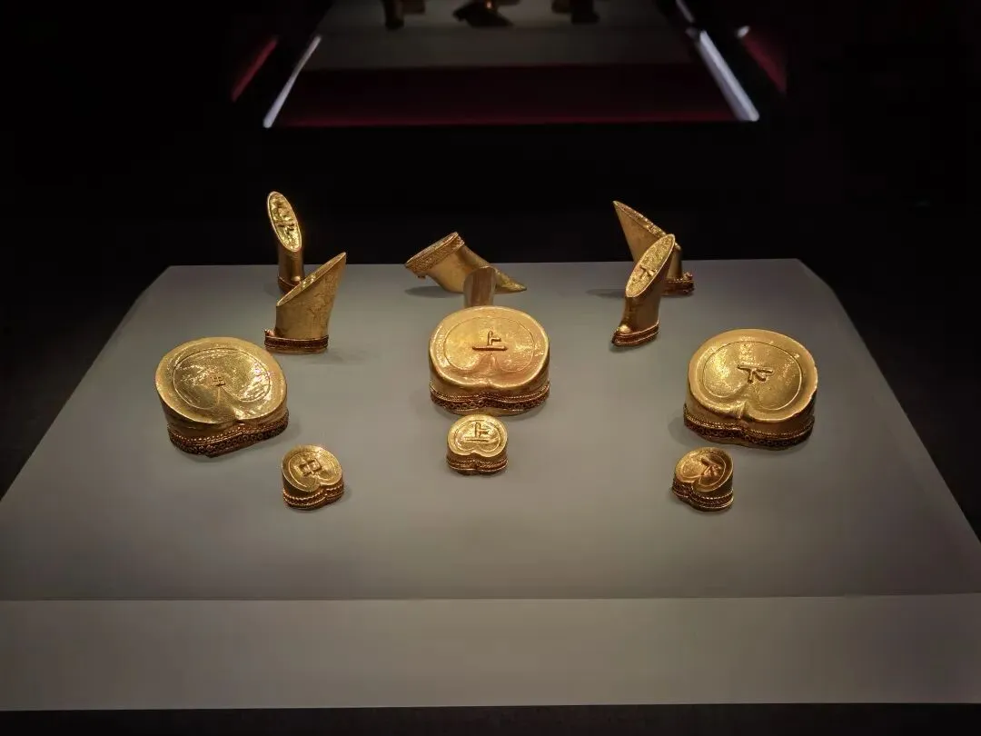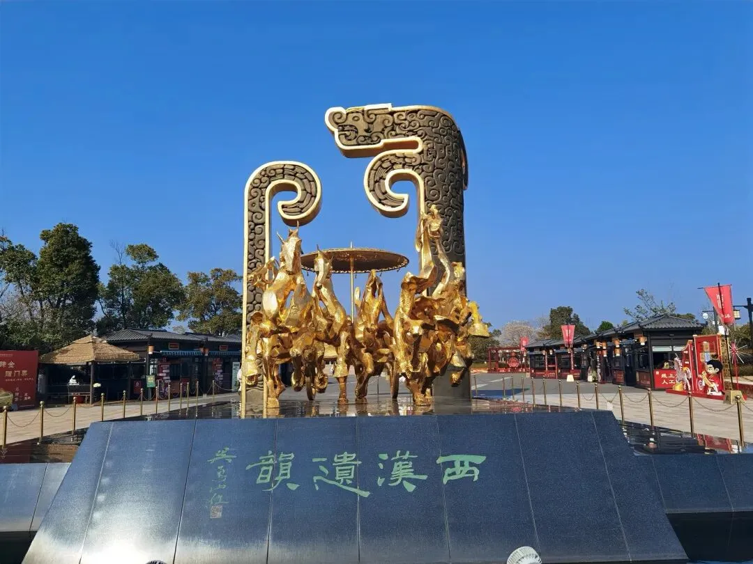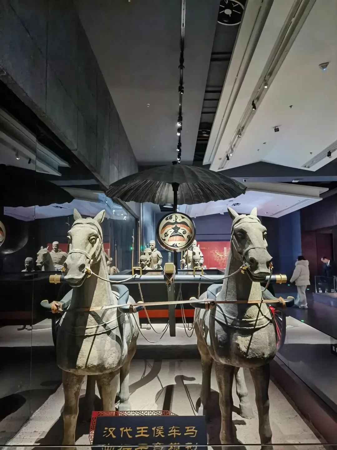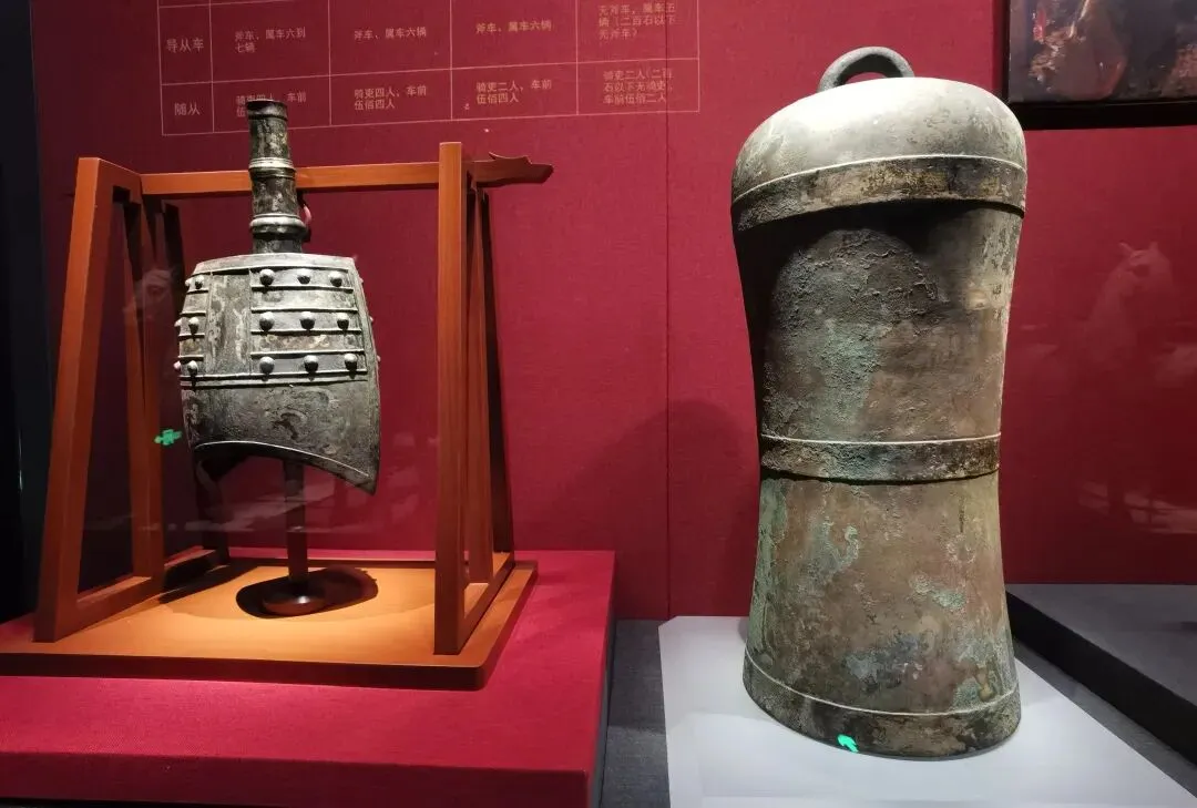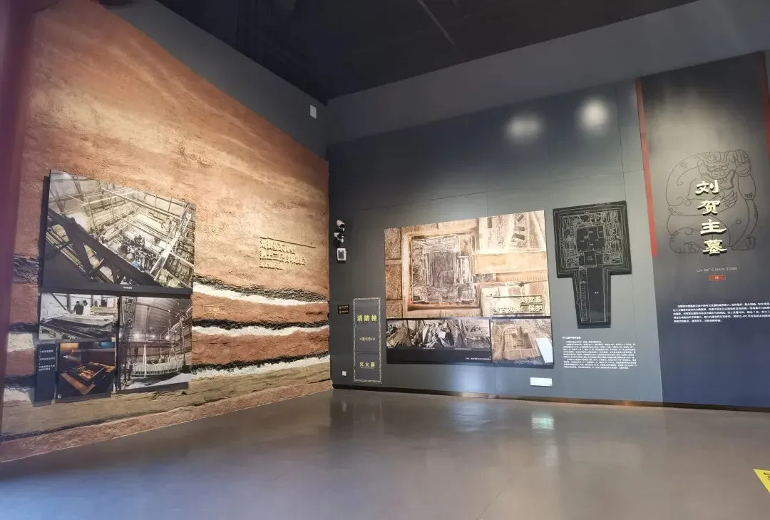 随着考古发掘的推进,震撼接踵而至。堆积如山的五铢钱,总重超过10吨;璀璨夺目的马蹄金、麟趾金、板金等,总重超过115公斤。是迄今我国汉墓考古发现金器数量最多、种类最全的一次,且墓中出土的金器远超之前西汉考古出土金器总和。其他诸如符合《周礼》中记载的“诸侯轩悬”的三堵悬乐;带有“昌邑二年”“昌邑九年”“昌邑十一年”年款的青铜器……它们不仅是西汉强盛国力的缩影,也是汉代经济社会制度的实物见证。海昏侯墓中出土的简牍数以千计,其内容涉猎极广,包罗万象,涵盖哲学、政治、军事、历史、医学、文学等诸多领域。其中包含500余枚《论语》简,经研究确认为失传1800多年的《齐论语》,是经学研究的重大发现。遗址博物馆建设用地面积约11.88公顷,总建筑面积约4万平方米,综合容纳展示陈列、文化交流、文物库藏、研究保护、考古研究基地、管理服务、后勤设备等七大功能板块。展示体系由海昏侯国历史文化室内综合展示和刘贺墓遗迹展示、刘贺墓园、祠堂岗墓园等文物遗迹遗址组成。遗址博物馆内设基本陈列《金色海昏——汉代海昏侯国历史与文化展》,专题展览《丹漆海昏——汉代海昏侯国漆器展》《书香海昏——汉代海昏侯国简牍展》《遇见海昏——汉文化体验互动展》以及临时交流展。“金色海昏——汉代海昏侯国历史与文化展”是海昏侯国遗址博物馆的基本陈列,展览通过对海昏侯国遗址、海昏侯墓园的完整介绍,以及海昏侯刘贺墓出土的大量文物,全面展示了海昏侯国的历史与文化,反映了西汉皇室、列侯的日常生活,体现海昏侯国文化遗存见证南方开发、中西文化交流等历史意义。刘贺墓室的南回廊甬道乐车库,出土了2辆彩绘的偶乐车,每辆车配2匹马,还有属于导车、从车性质的轺车6辆,以及御车木俑。偶乐车其中一辆为金车,有青铜錞于、青铜钲、青铜镯、青铜甬钟各1件;另一辆为鼓车,配有建鼓。这是迄今为止首次发现的“金车”与“鼓车”搭配的西汉列侯豪华马车。《荀子·议兵》记载“闻鼓声而进,闻金声而退”,王侯出行车辆众多,这里的金车和鼓车,起到的应该就是车队指挥的作用。錞于是打击乐器,通常与钲、鼓配合使用。击鼓就是敲鼓,“鸣金”就是“鸣钲”,《说文解字》记有“钲,似铃,柄中上下通”。青铜镯是目前首次考古出土,印证了古文献关于镯的记载,填补了考古史上的空白。