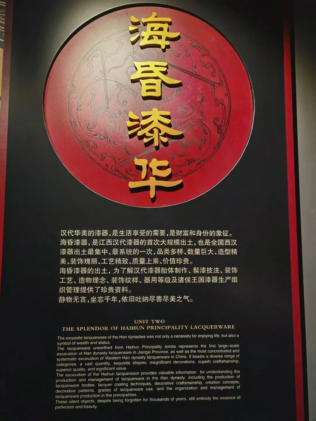 有最早的“南昌”铭文实物“南昌”铭文青铜豆形灯、最早的西汉诸侯王国籍田礼实证“昌邑籍田”青铜鼎和青铜豆形灯、发现年代最早的中药炮制品实物地黄,迄今发现的我国最早的钢制医针、首次出土的“六博棋谱”、首次出土的青铜缸形器、已知最早的具备蒸馏功能的青铜器……堆积如山的五铢钱,光彩夺目的黄金器物,工艺精美的服饰玉器,造型典雅功用齐全的青铜器具,令人目不暇接,震撼不已。孔子徒人图漆衣镜,镜匣背面绘有孔子及其五位弟子的图像和传记,是目前所知最早的孔子像,也是唯一的一幅早期孔子肖像,体现了汉代“崇儒”的文化风尚。镜镜匣正面绘有东王公、西王母及神兽图案,是目前发现最早的东王公图像和文字资料,将东王公神格和图像的出现时间提前至西汉时期。“丹漆海昏——汉代海昏侯国漆器展”作为江西省首个漆器专题展,集中展示了海昏侯墓出土漆器保护研究的最新成果。展厅的展陈空间510平方米,分为大气华章、漆器万象、髹物乾坤三个单元,共展出90余件(套)精美文物,重现了西汉贵族奢华的生活图景和无与伦比的漆器文化。海昏侯刘贺墓出土漆器两千多件,器形大小兼备,纹饰清秀华美,装饰推陈出新,是西汉中期漆器的代表作品。距博物馆两公里处的刘贺墓园以“海昏藏宝”为主题,集中展示了刘贺墓主墓遗址、墓前祭祀建筑遗迹及车马坑遗址。秉持“还原遗址现场感”的原则,综合运用原状展示、场景复原、考古模拟、裸眼3D动画、360°悬吊荧幕等多种技术,结合图文内容,全景式呈现刘贺墓园遗迹结构、考古过程与保护成果。在南昌汉代海昏侯国遗址,观览才半日,穿越两千年。不可不来,不虚此行。往期回顾: