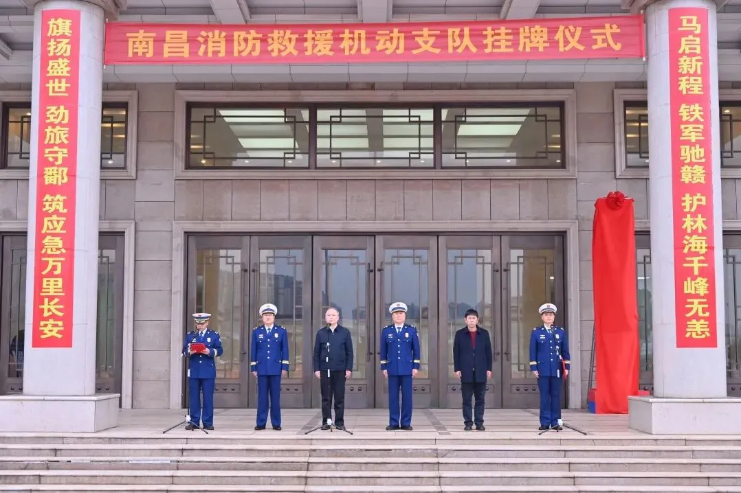 2026年2月4日上午,南昌消防救援机动支队隆重举行挂牌仪式,江西省应急管理厅厅长徐卫明、福建消防救援机动总队总队长王永军共同揭牌,江西省消防救援总队总队长王献忠出席仪式,支队长郑树东发表致辞,仪式由支队政委苏长根主持。