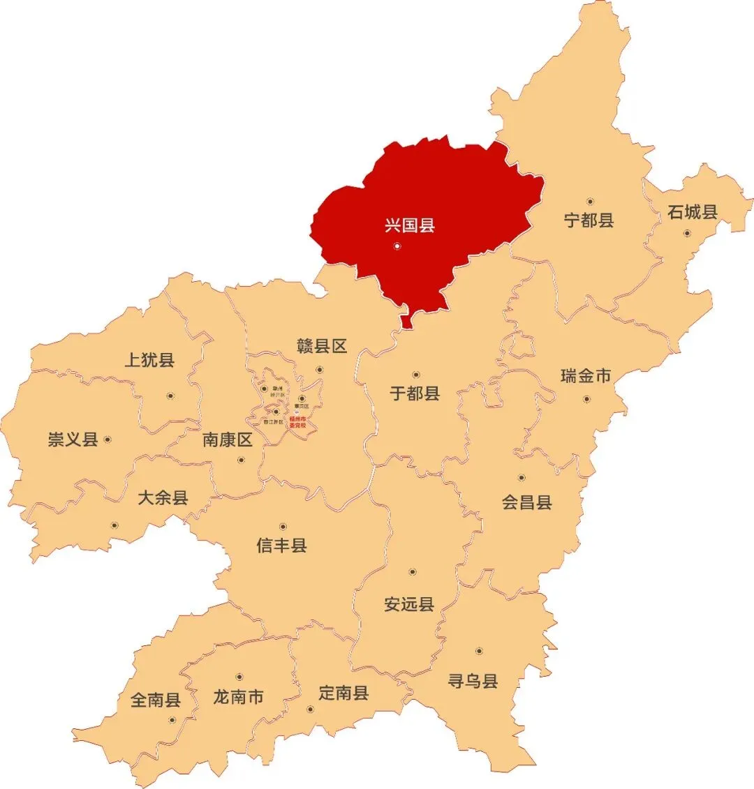 兴国是著名的红军县、烈士县、将军县和苏区模范县,是人民军工的发祥地、苏区精神和苏区干部好作风重要发源地。苏区时期,全县23万人口,参军参战的就达9.3万人,为国捐躯5万多人,有姓名可考烈士达23179名,仅牺牲在长征路上的兴国籍官兵就有12038人,可谓“万里长征路,里里兴国魂”。毛泽东同志称赞兴国的同志们创造了“第一等的工作”,亲笔题写“模范兴国”褒扬兴国。从此,“模范兴国”的光荣称号享誉中华,载入中国革命史册。