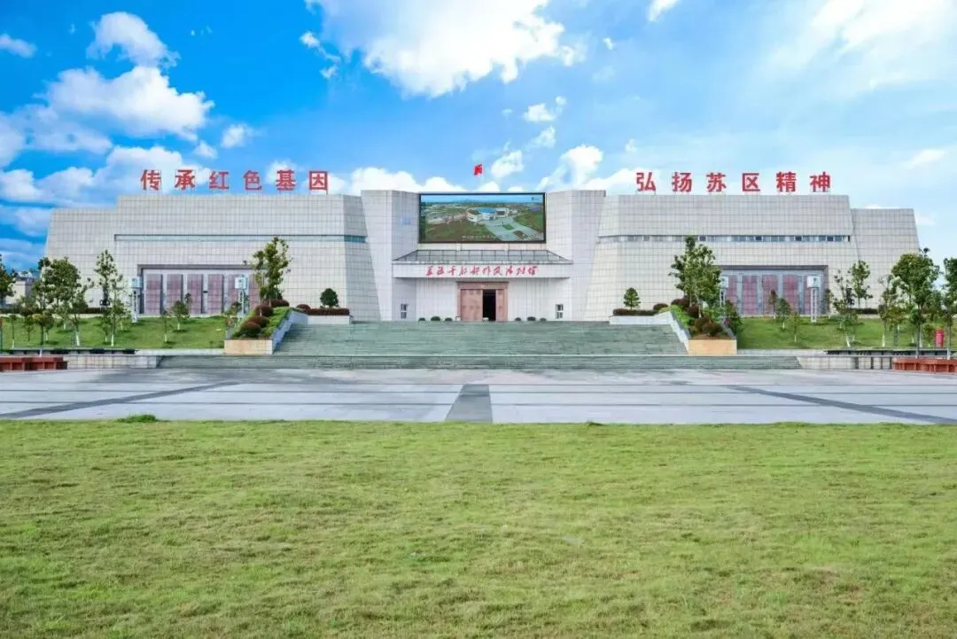 简介:将军园(苏园)占地508亩,由将军馆、将军广场、“三面红旗”大型群雕、国防教育广场、将军湖、上将亭等组成。兴国将军馆2018年被评为“全省十大精品馆”,建筑面积4200平方米,布展面积3090平方米,展线长530米,屋顶是红军八角帽造型,展厅和大门由镰刀、斧头形状构成。将军馆一楼为兴国籍56位开国将军生平展,利用图片、实物、文字以及声光电等形式再现了兴国籍开国将军们的英勇事迹。