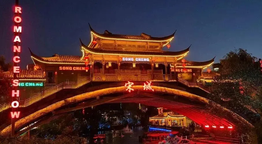 晚上我去了江南宋城。本来以为又是一个千篇一律的商业古镇,结果被打脸了。