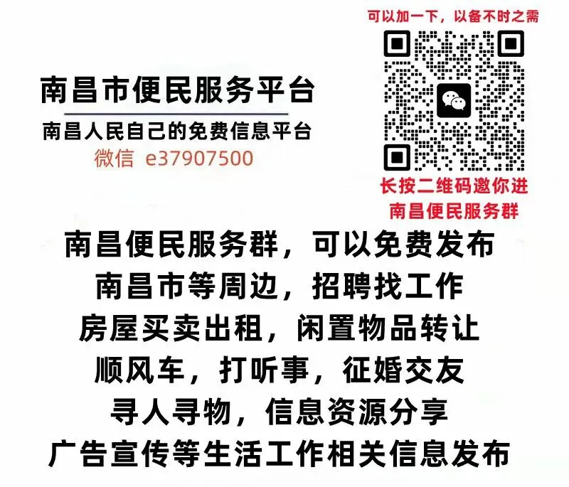 南昌市等周边,招聘找工作,房屋出租买卖,闲置物品转让,顺风车,信息资源分享,打听事,征婚交友,寻人寻物,广告宣传,等