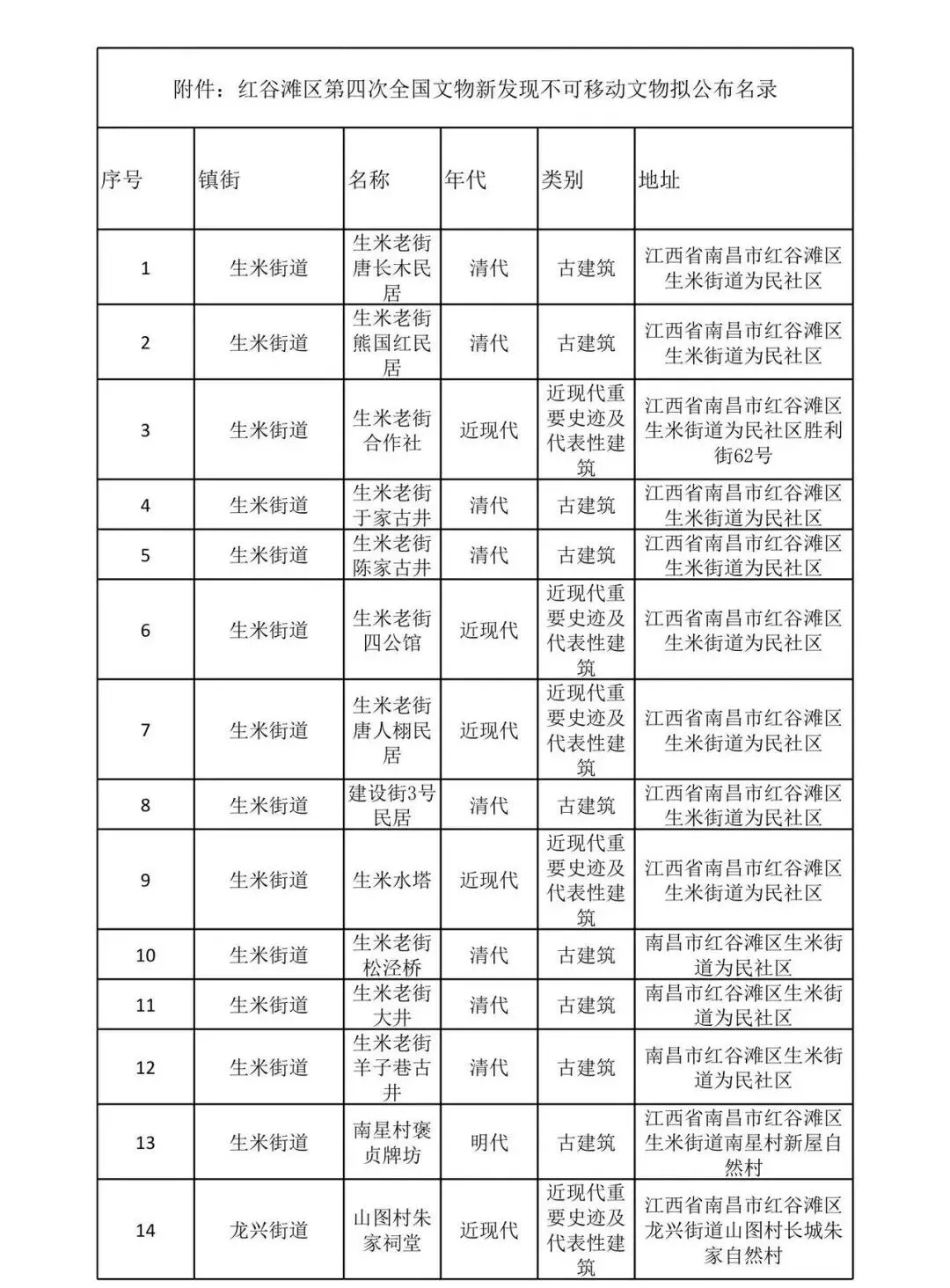 附件:红谷滩区第四次全国文物普查新发现不可移动文物拟公布名录