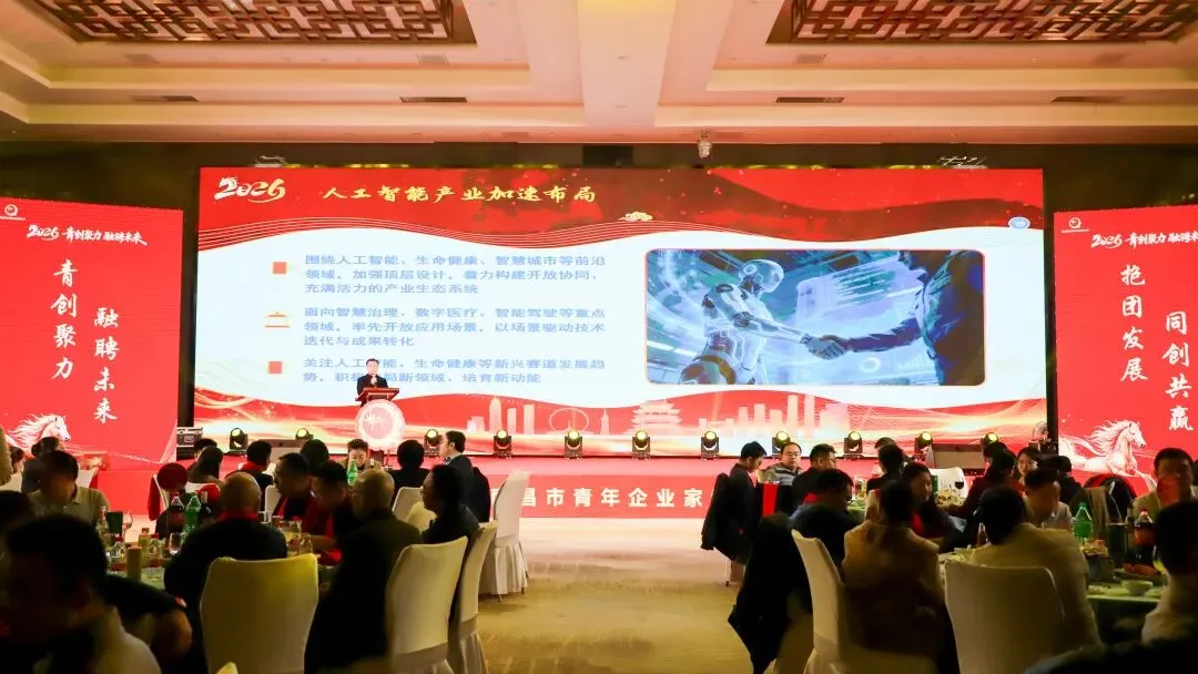 2月4日晚,东湖区联合南昌市青企协在南昌瑞颐大酒店成功举办“青创聚力 融骋未来”——2026年迎新汇暨东湖区招商专题推介活动。活动吸引了两百余名国内外优秀青年企业家及百余家行业龙头企业参会,东湖区政府副区长姚乐在现场作产业招商专题推介。