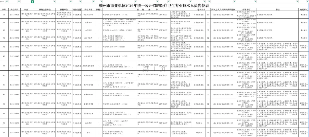 1.赣州市事业单位2026年统一公开招聘工作人员岗位表