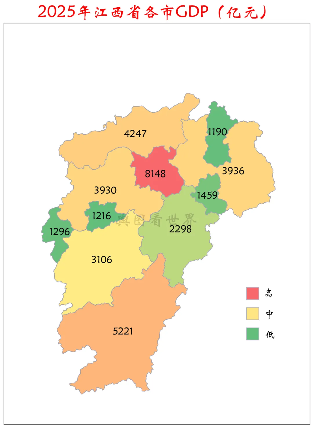 >2025年江西省各地市GDP排名:南昌一城独大,赣州第二,鹰潭人均最高