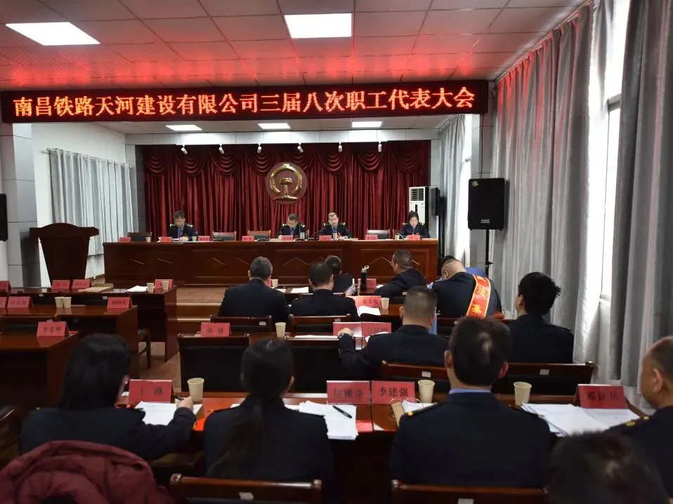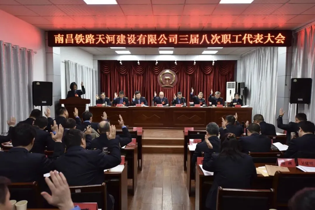 南昌铁路天河建设有限公司三届八次职工代表大会、三届八次工会会员代表大会在《咱们工人有力量》的歌声中胜利闭幕。