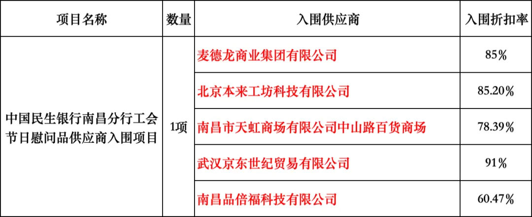 中国民生银行南昌分行工会节日慰问品供应商入围项目